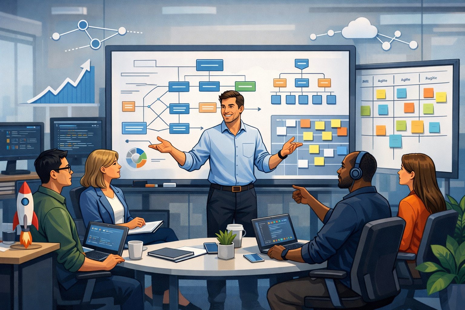 - Processes: Sprint planning, standups, retros