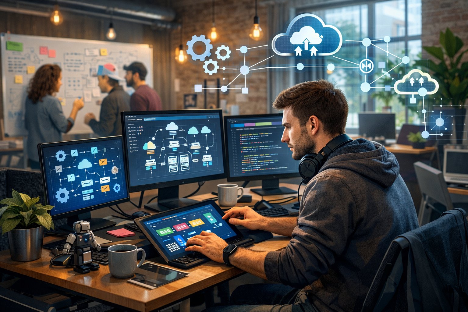 | 20+ developers | Architecture, tooling standards, cost optimization | Self-service deployments, team-level monitoring |