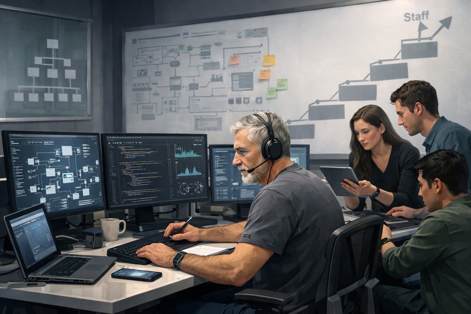 | Staff engineer | Multi-team programs | Org-wide | Strategic direction |