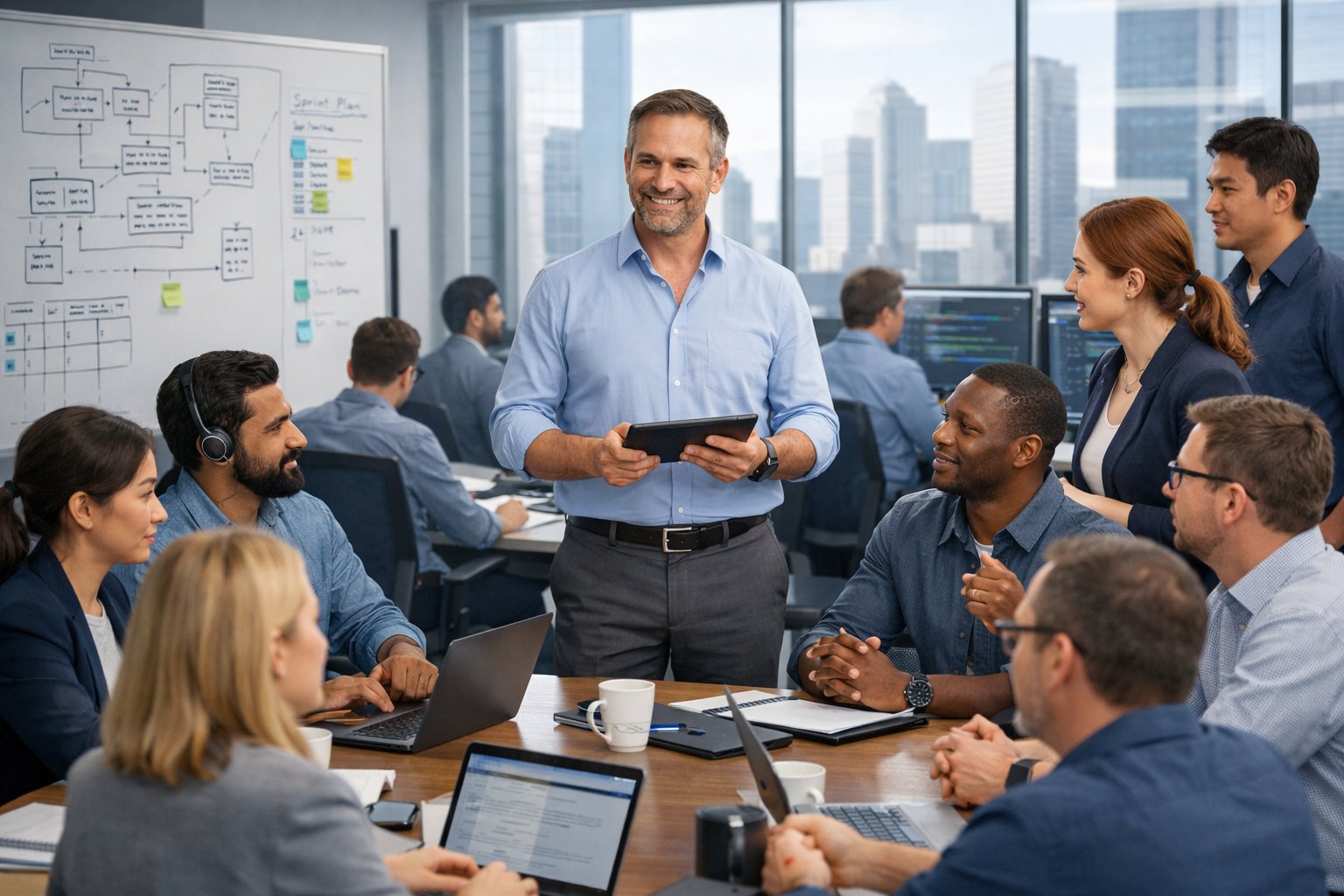 | Team scope | 1–2 teams (8–15 people) | Whole department (30–60) | Cross-functional org |